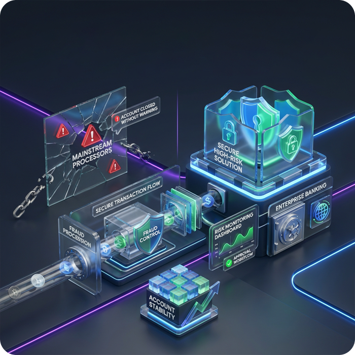It starts with proper underwriting. Our specialists review your business model upfront and match you with a backend bank that is built for your industry.