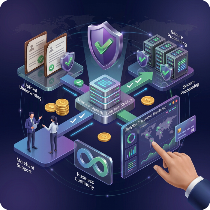 Mercuria Payments helps you handle high volume and high ticket transactions with stability. You stay in control, process confidently, and avoid unnecessary disruptions.