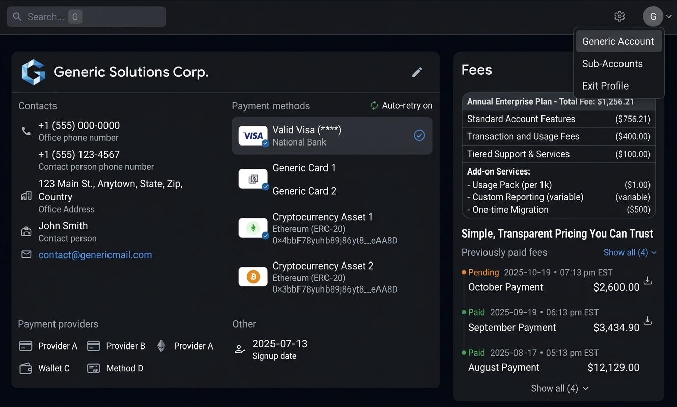 Custom interchange-plus pricing is available for higher-volume merchants. Every account includes chargeback tools, decline recovery, and access to 30+ banking partners.